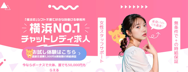 横浜は、神奈川県内でもチャットレディ事務所が多く、通勤・在宅どちらも選びやすい人気エリアです。